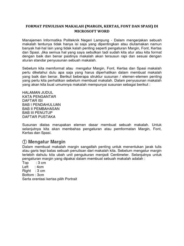 Format Penulisan Makalah Margin Kertas Font Dan Spasi Di