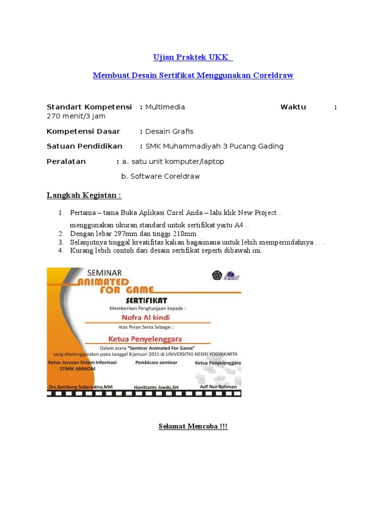 Membuat Desain Sertifikat Menggunakan Coreldraw Ukk
