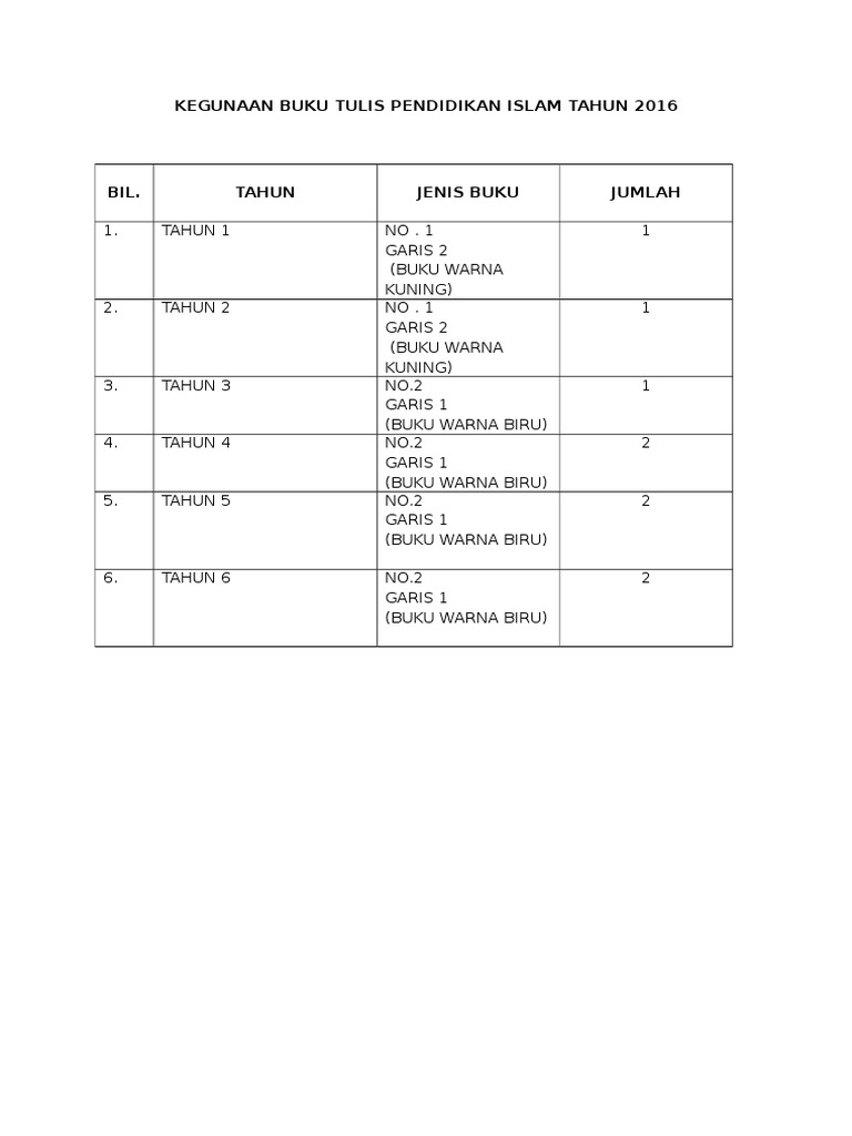 Kegunaan Buku Tulis Pendidikan Islam Tahun 2016