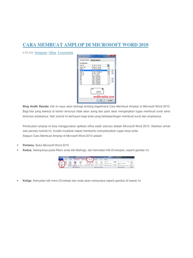 Cara Membuat Amplop Di Microsoft Word 2010 Blog Andik Rasida Pdf