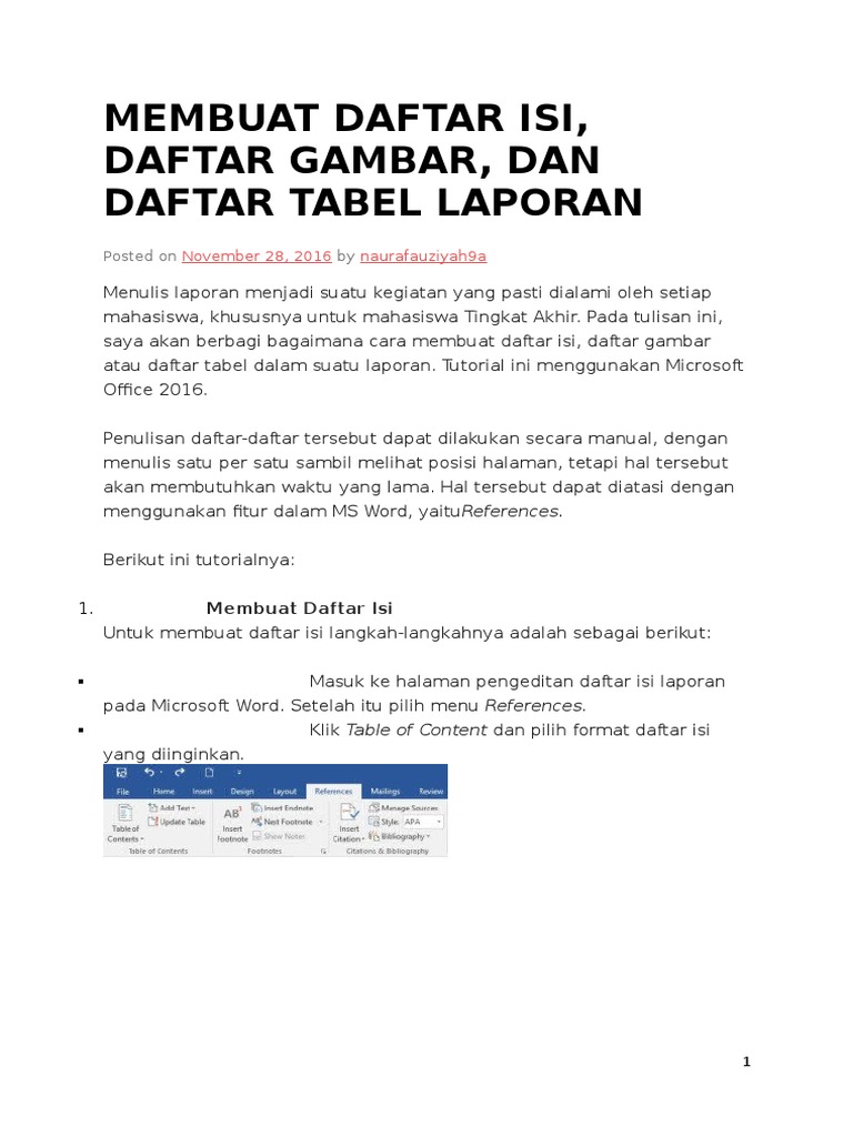 Office Word 2016 Membuat Daftar Isi Daftar Gambar Dan Daftar