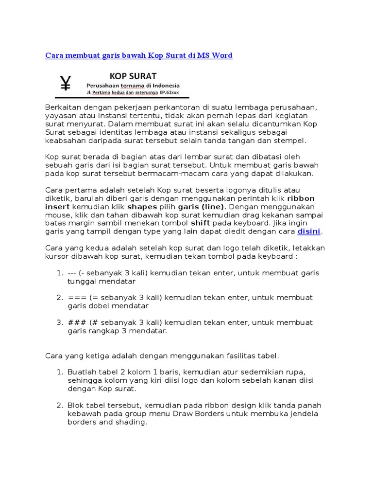 Cara membuat garis bawah kop surat. Dorobi id 606 views. Demikianlah langkah langkah bagaimana cara menambahkan garis di bawah tulisan untuk kop surat melalu microsoft word. Dorobi id 269 views.