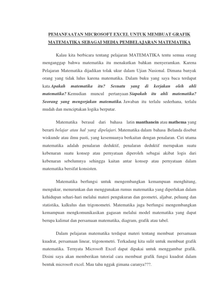 Pemanfaatan Ms Ecxel Untuk Membuat Grafik Matematika Sebagai Media