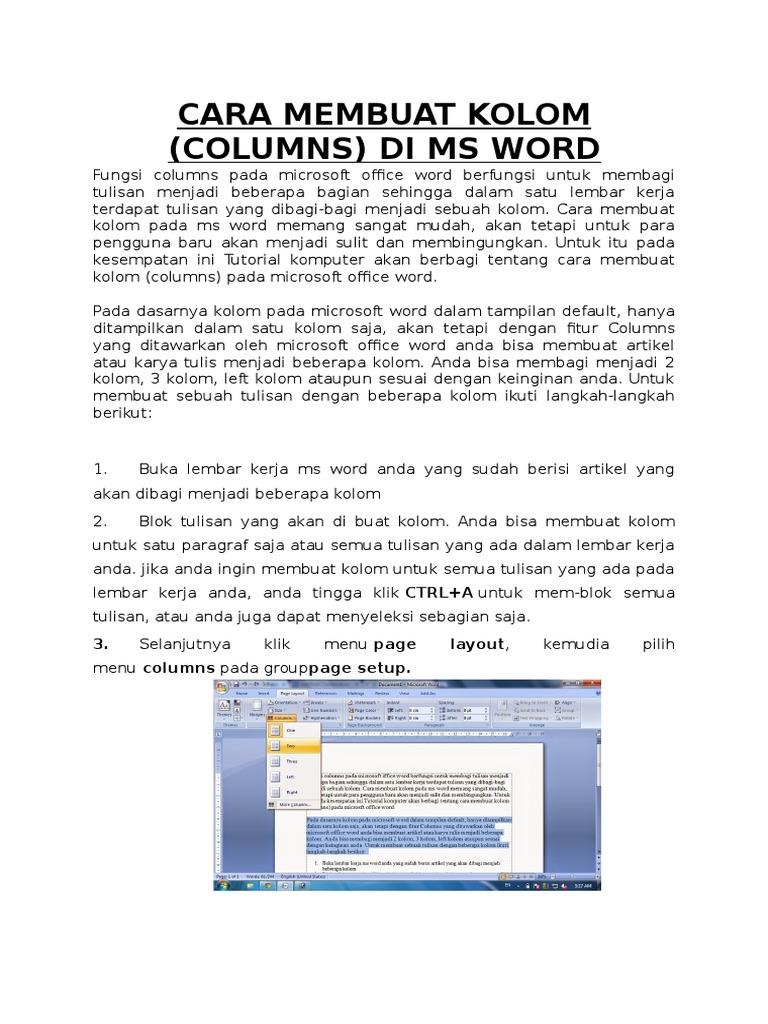 Cara Membuat Tulisan Berkolom Di Microsoft Word Untuk Pemula