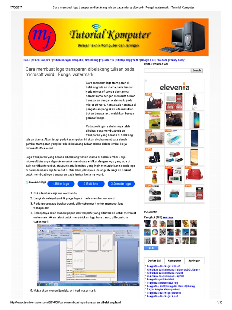 Cara Membuat Watermark Pada Dokumen Word Computer 1001