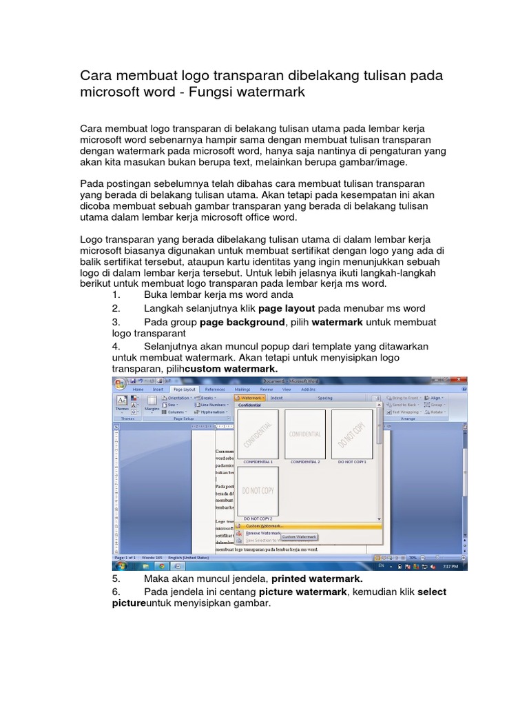 Cara Membuat Watermark Di Word Gambar Logo Dan Tulisan