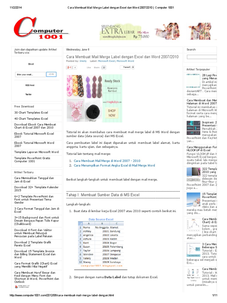 Cara Membuat Mail Merge Label Dengan Excel Dan Word Computer 1001