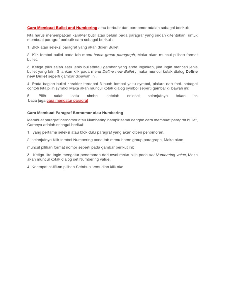 Cara Membuat Bullet And Numbering Di Microsoft Word
