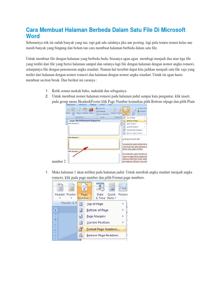 Cara Membuat Halaman Berbeda Dalam Satu File Di Ms Word 2007 2010