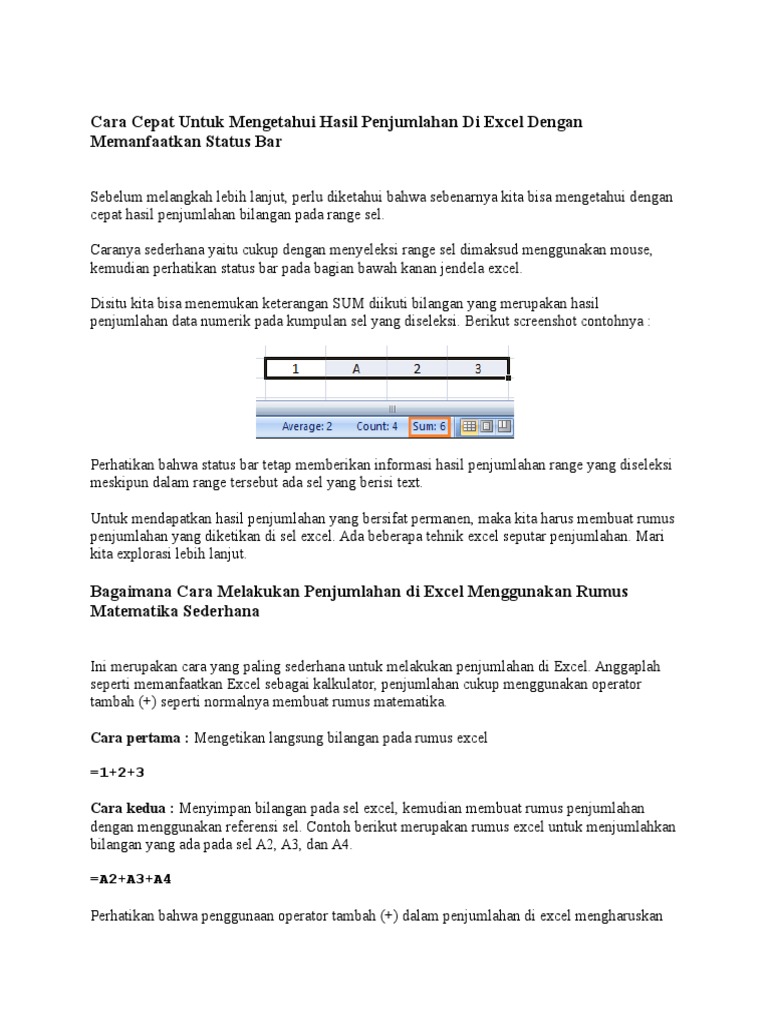 Cara Cepat Untuk Mengetahui Hasil Penjumlahan Di Excel Dengan