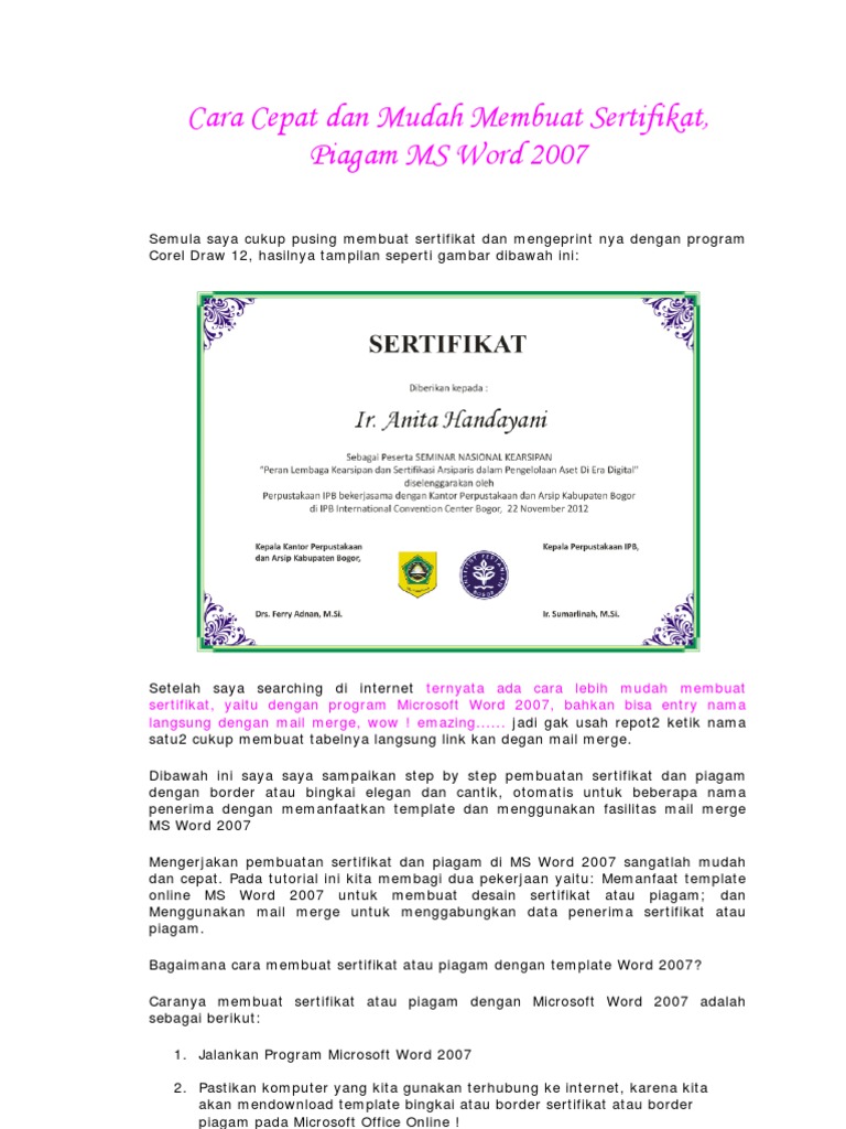 Cara Membuat Sertifikat Dengan Ms Pdf