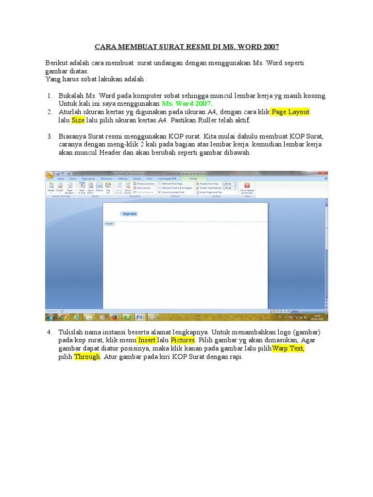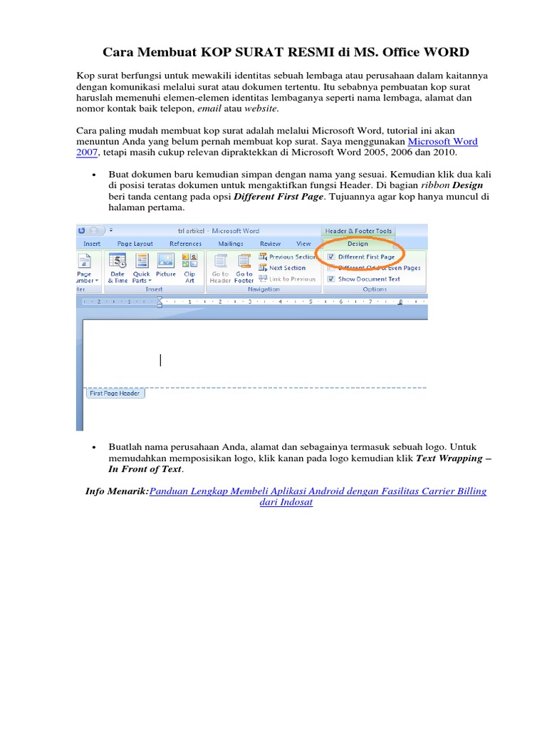 Cara Membuat Kop Surat Di Microsoft Word 2007 Lengkap Dengan