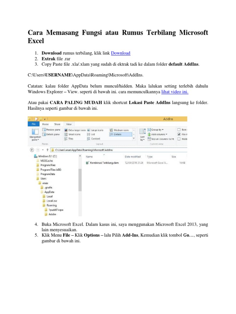 Cara Menginstal Rumus Terbilang Dalam Microsoft Excel Youtube