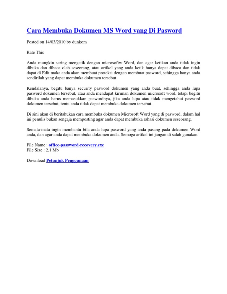 Cara Membuka Dokumen Ms Word Yang Di Password