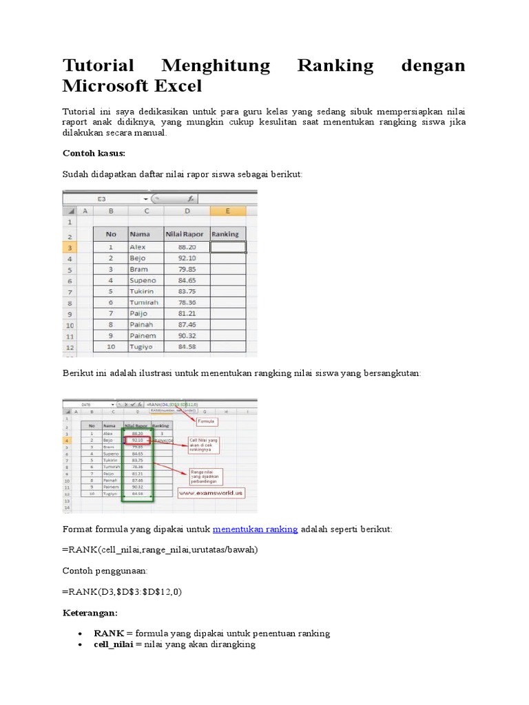 Cara Menentukan Ranking Kelas Di Microsoft Exel Kherysuryawan Id