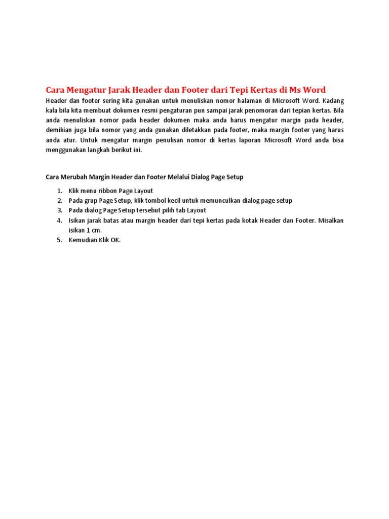 Cara Mengatur Jarak Header Dan Footer Dari Tepi Kertas Di Ms