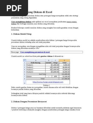 Contoh Soal Menghitung Diskon Atau Potongan Harga Dengan Excel