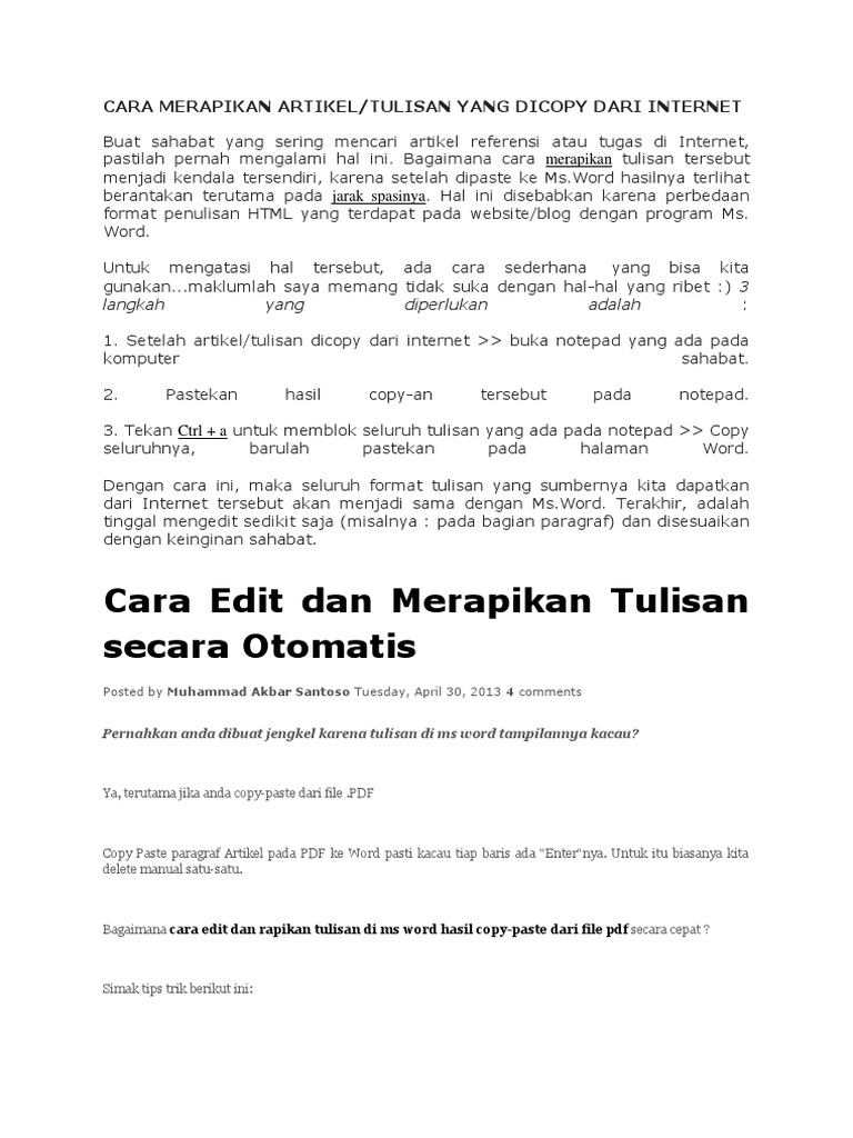 Doc Cara Merapikan Copy Paste Kalimat Yg Berantakan Dari Internet