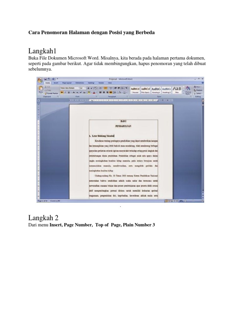 Langkah1 Cara Penomoran Halaman Dengan Posisi Yang Berbeda