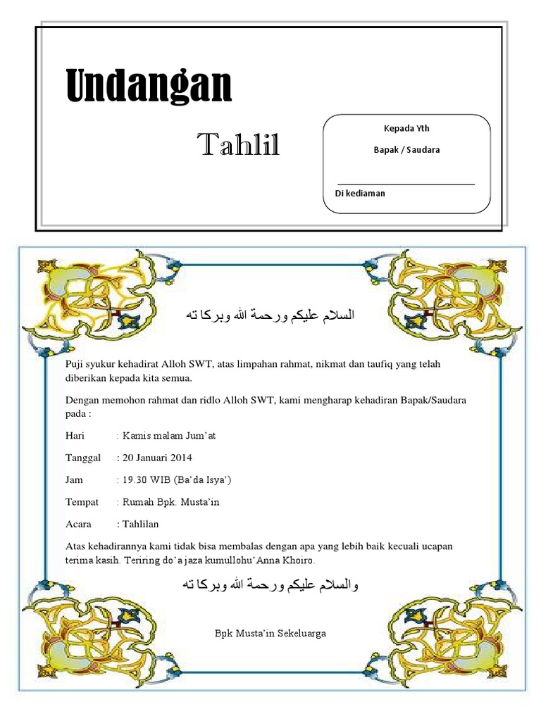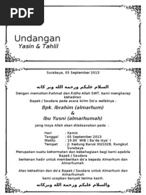 Contoh Surat Undangan Tahlil 40 100 1000 Hari Haul Doc