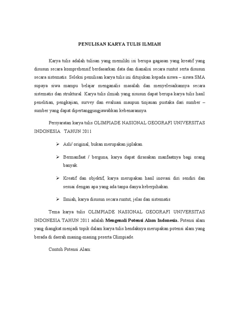 10 Contoh Karya Tulis Ilmiah Sederhana Bahasa Indonesia Populer Pdf