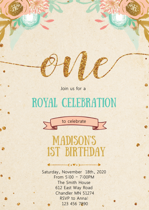 Undangan Ulang Tahun Bunga Ke 1 Templat Postermywall