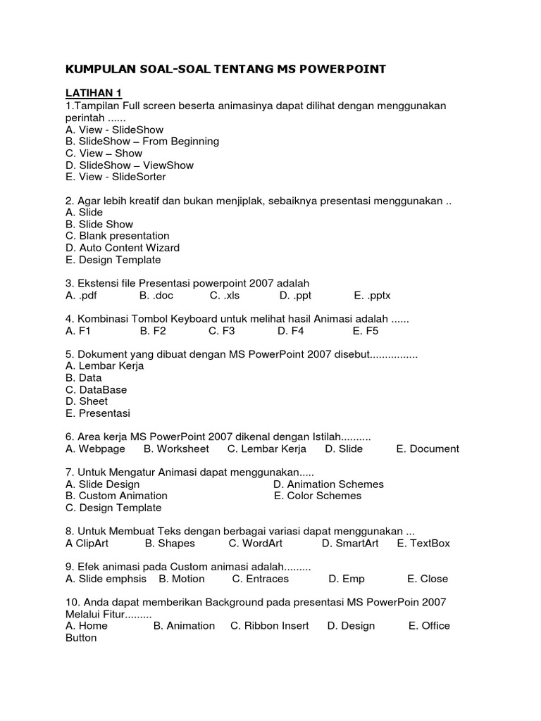 Kumpulan Soal Latihan Komputer M Ppt