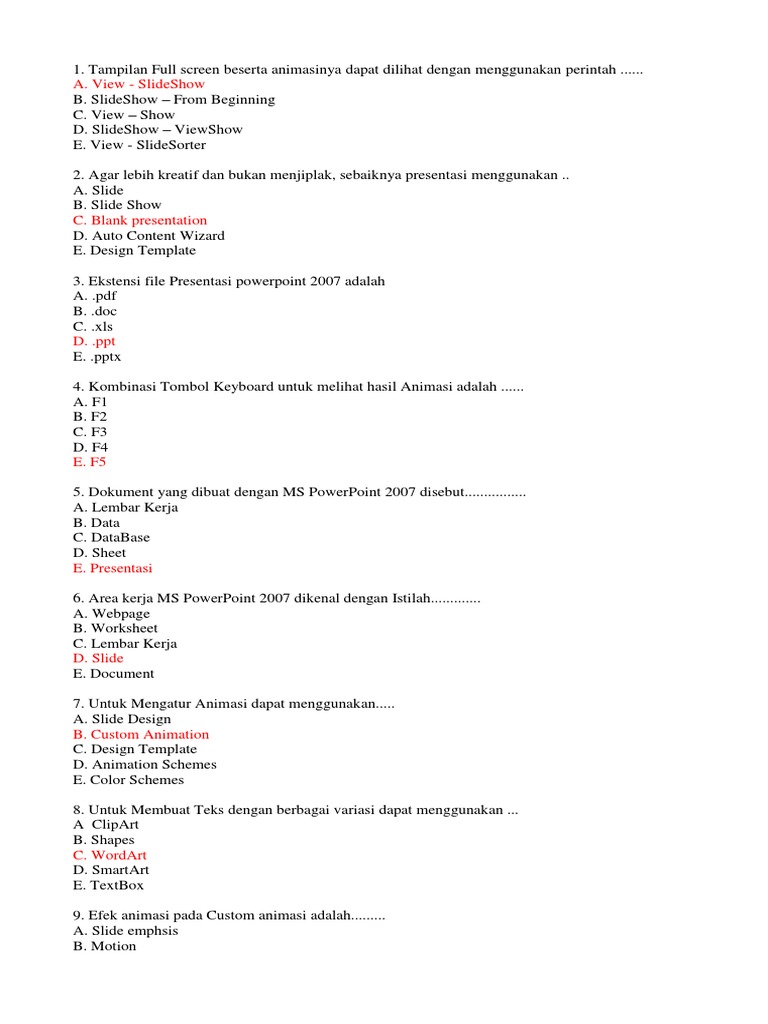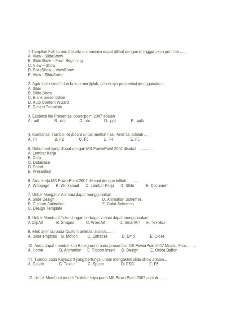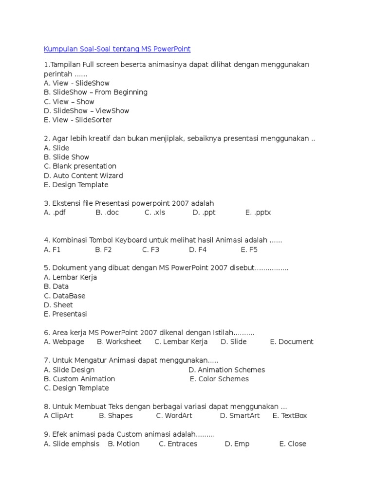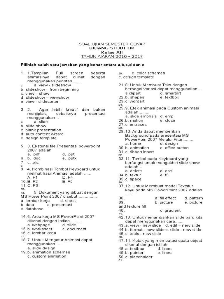 Soal Uh Kelas 12 Smtr 2 Microsoft Powerpoint 2007