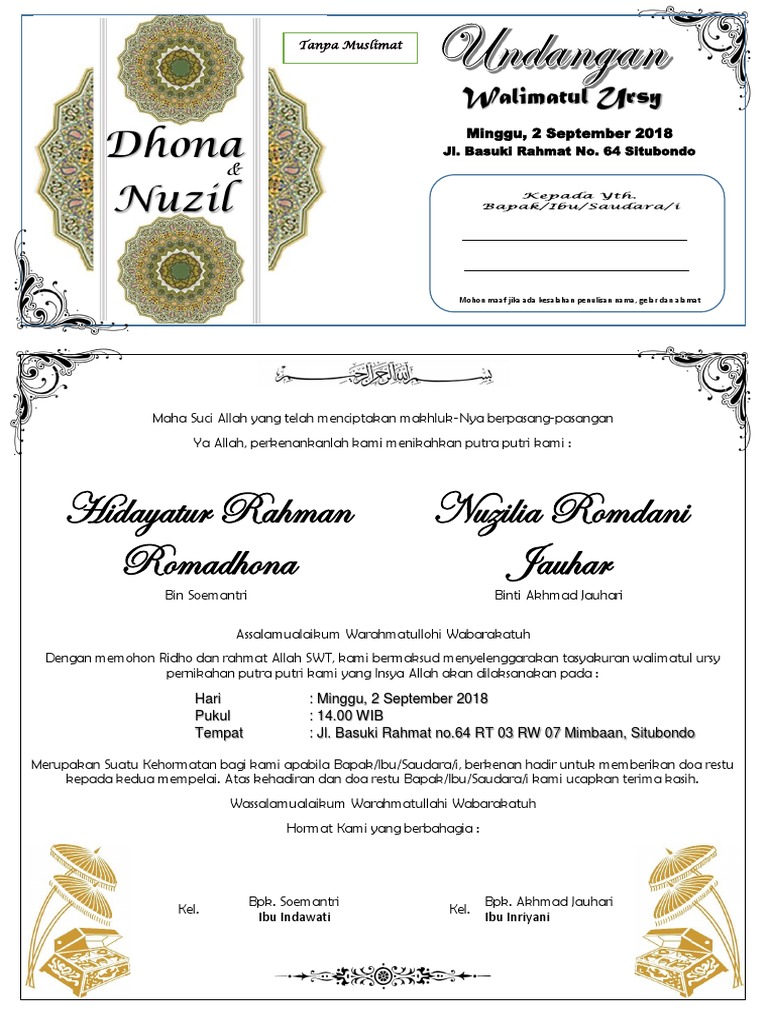 Contoh Undangan Walimatul Ursy Lipat 3 Sisi Png Doc Word Psd Cdr