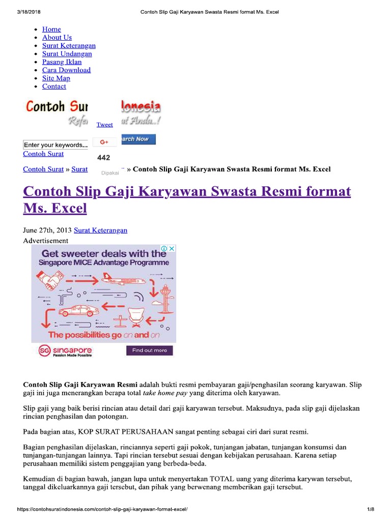 Contoh Slip Gaji Karyawan Swasta Dalam Format Excel Word Dengan