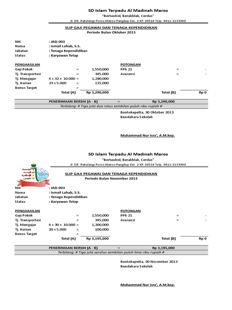 Contoh Slip Gaji Karyawan Terlengkap Guru Word Pdf Excel