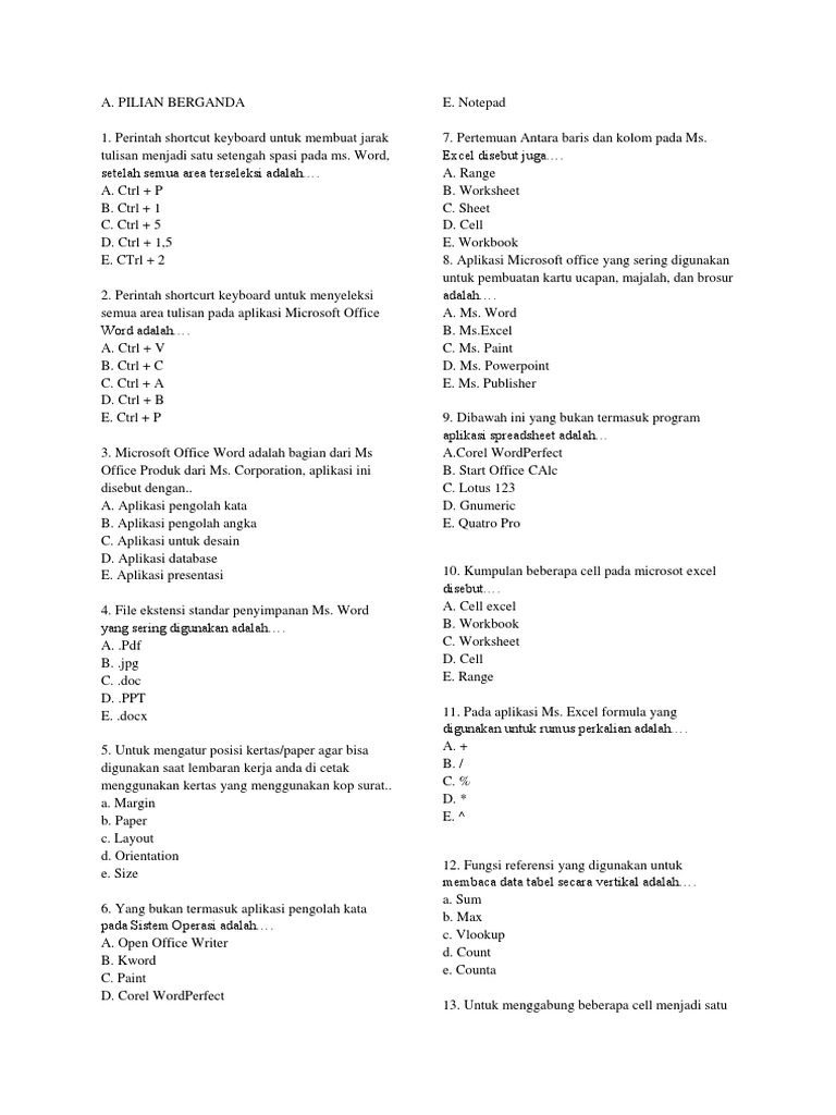 13 Soal Dan Jawaban Tentang Microsoft Word Dan Excel Materi Belajar