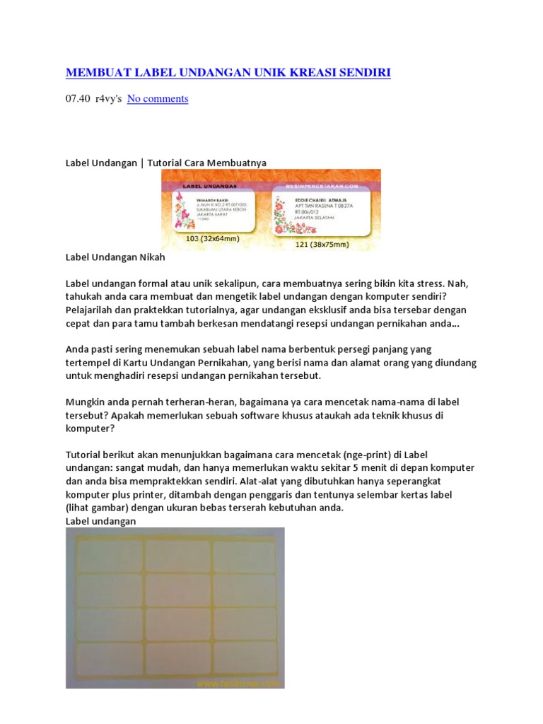 Termudah Cara Membuat Label Undangan Print 103 121 Di