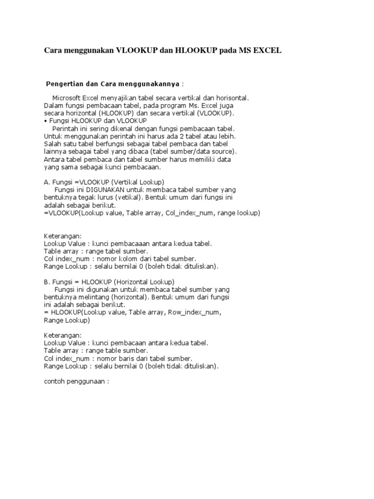 Cara Menggunakan Vlookup Dan Hlookup Pada Ms Excel