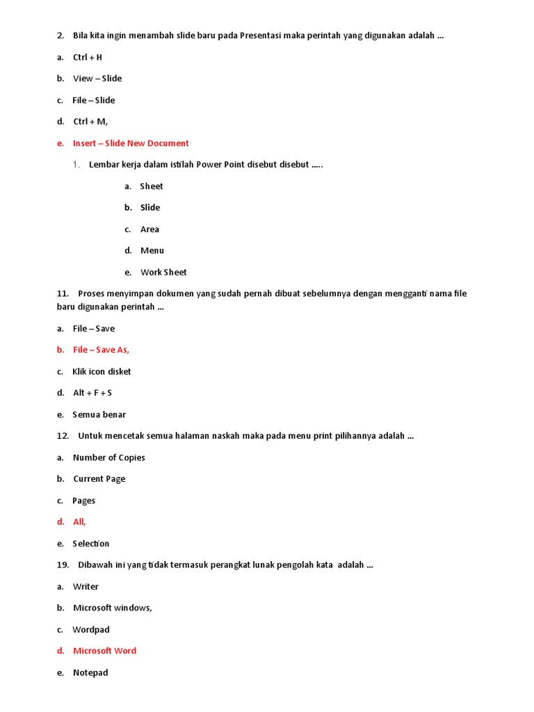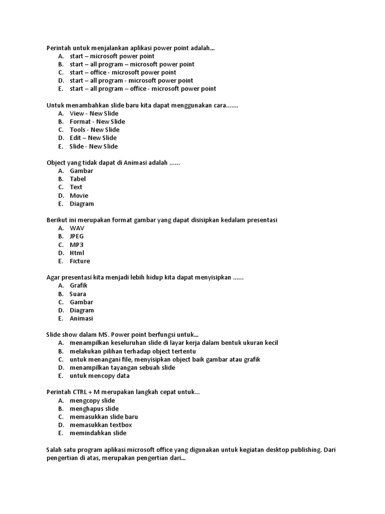 Soal Multimedia Satu Docx Perintah Menambah Slide Baru Pada