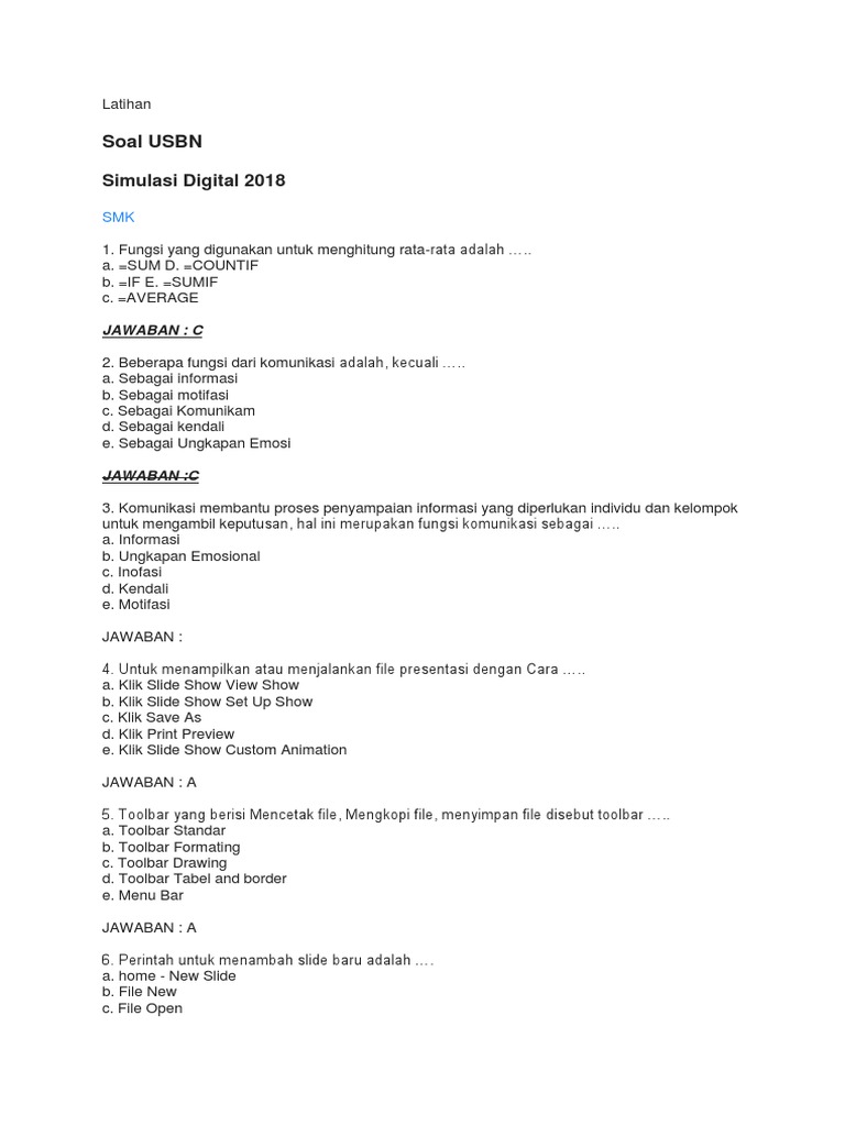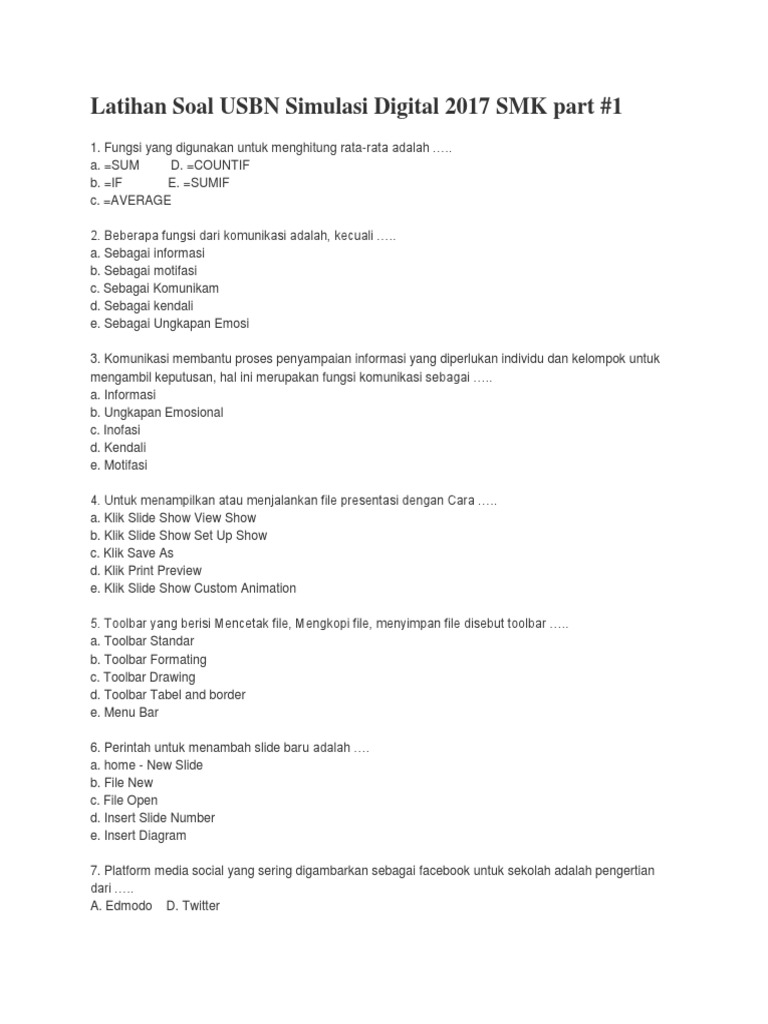 Doc Latihan Soal Usbn Simulasi Digital 2017 Smk Part 1