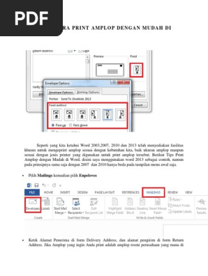 Cara Mencetak Satu Amplop Envelope Di Word 2013