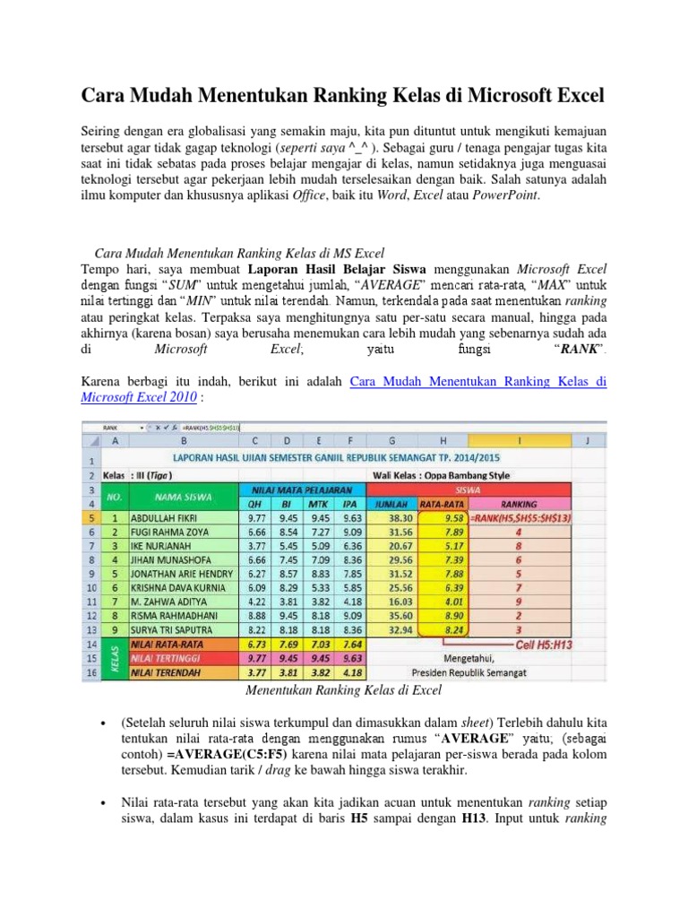 Cara Mudah Menentukan Ranking Kelas Di Microsoft Excel