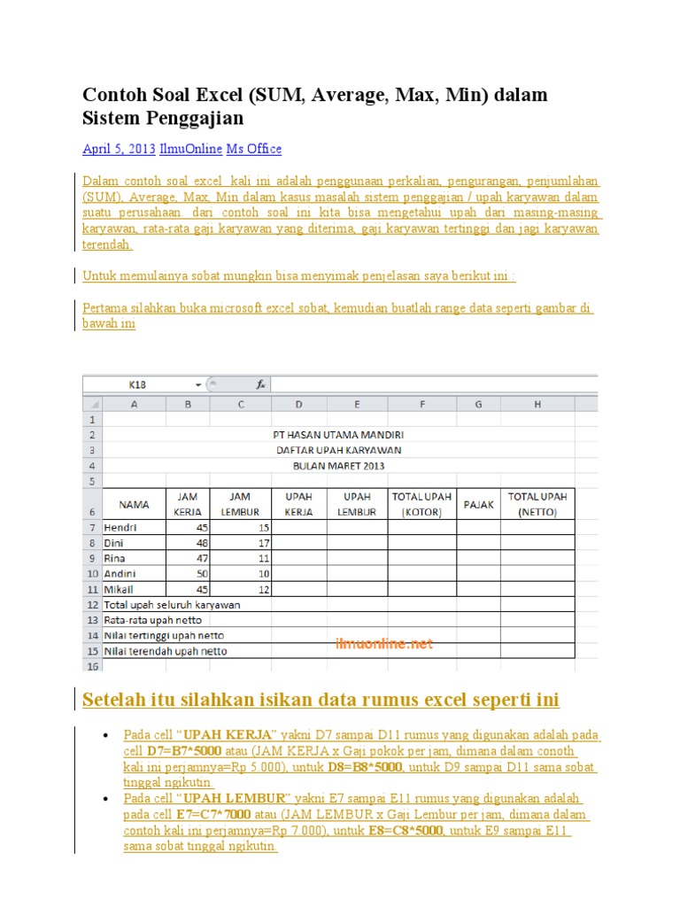 Contoh Soal Excel Sum Average Max Min Dalam Sistem Penggajian