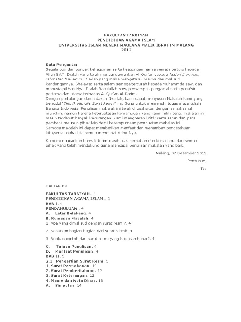 Sebutkan Bagian Bagian Surat Resmi Kolom Info