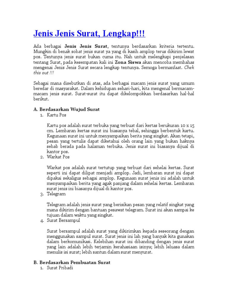 Pengertian Surat Jenis Jenis Surat Beserta Penjelasan Super
