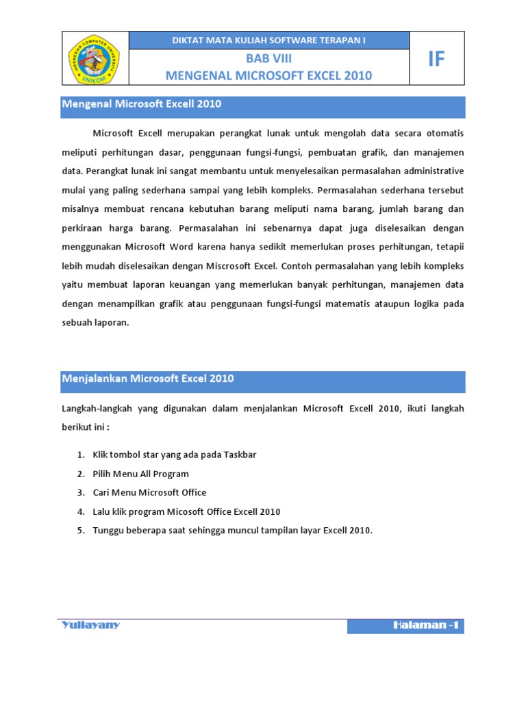Mengenal Microsoft Excel 2010 Yolandari Gustira