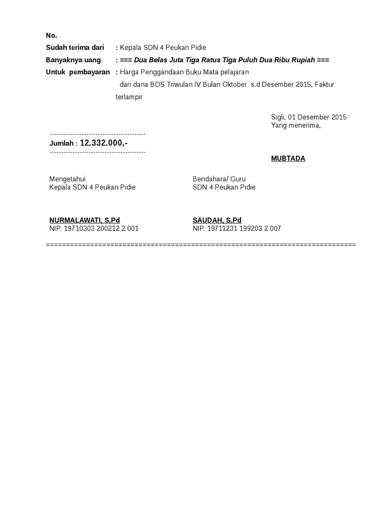 Telah Diterima Uang Sebanyak Rp295000000 Dua Juta Sembilan Ratus