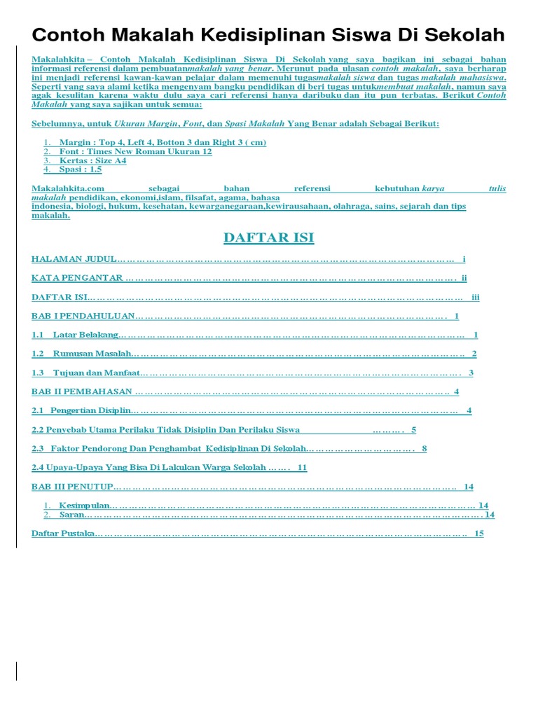 Contoh Makalah Kedisiplinan Siswa Di Sekolah