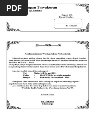 Format Undangan Syukuran Pernikahan Word Undangan Bersyukur Surat