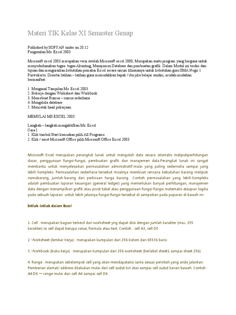 Teknologi Informasi Komunikasi Membuat Dokumen Dengan Microsoft Excel